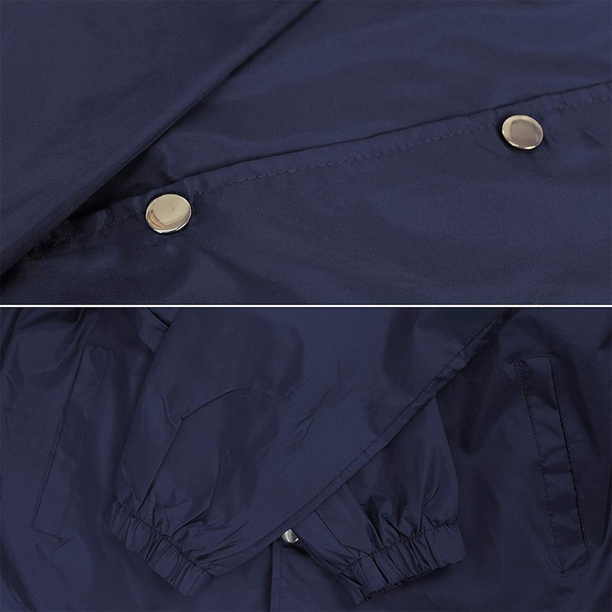 This premium coach jacket features a spread collar, long sleeves, banded cuffs, two front slit pockets and a front button fastening with adjustable tabs at the waist.